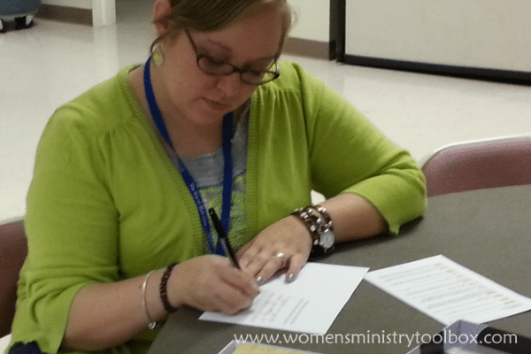 We gave our women several ideas for filling their bags (most of which can be found at the Dollar Store). Stress the importance of staying within the $5-$10 so every woman who receives a bag is able to pass it on and bless another.